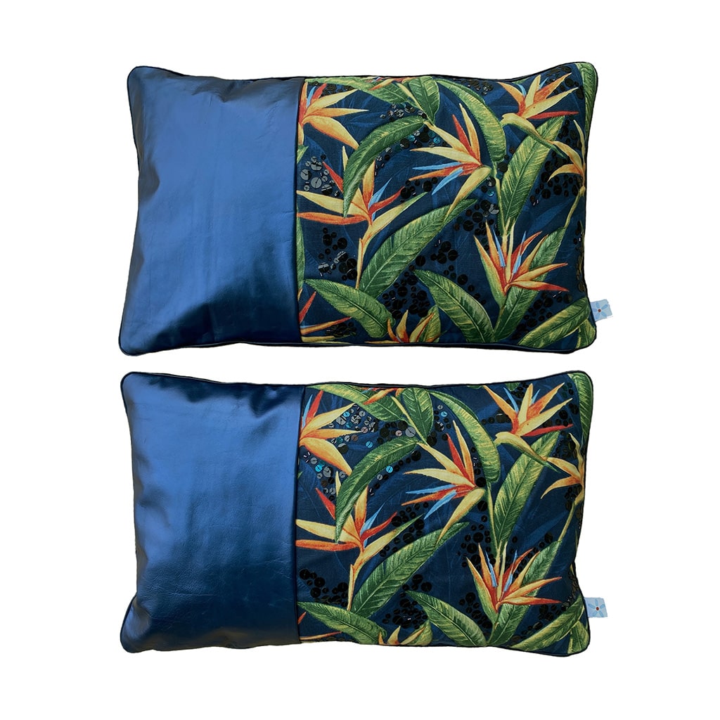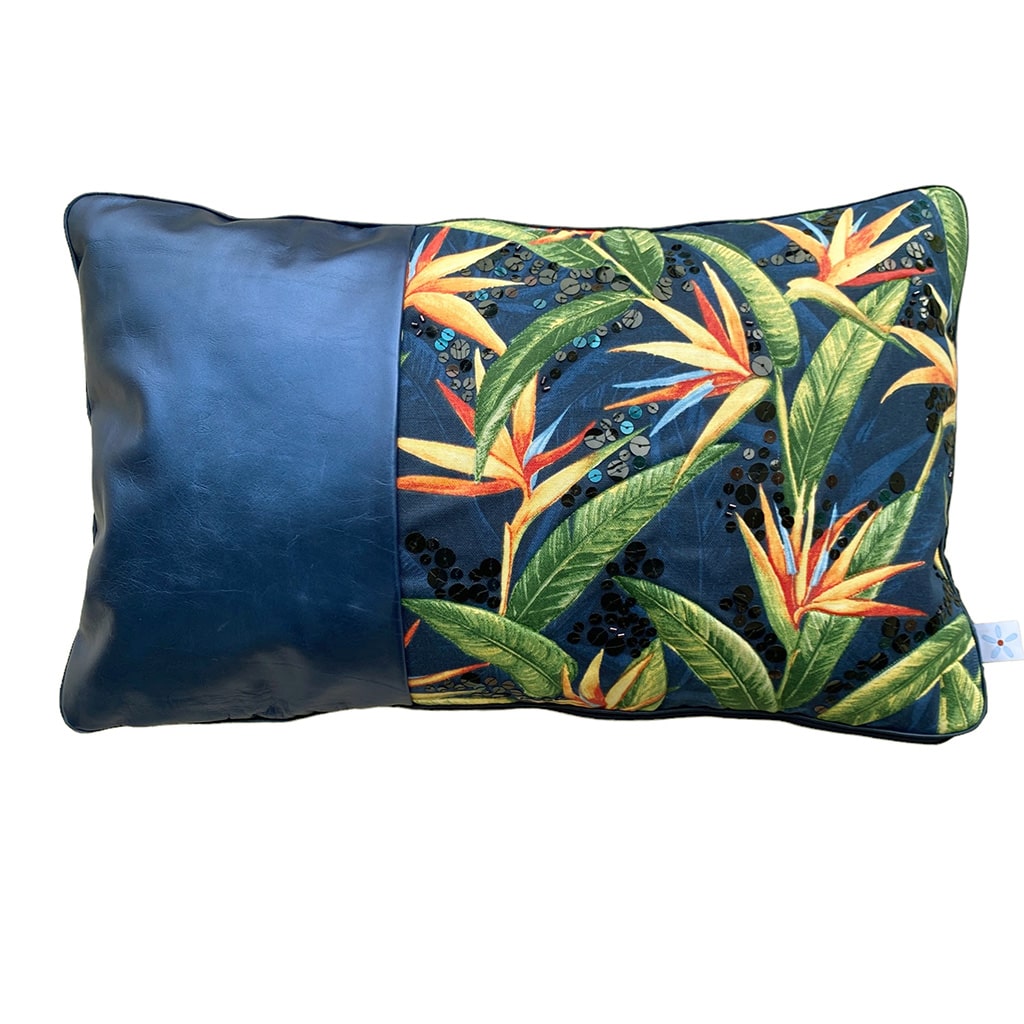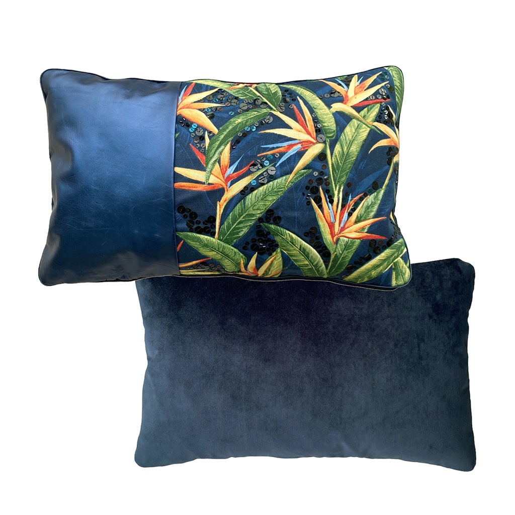 Housse de coussin en cuir, coton et velours 30×50 cm