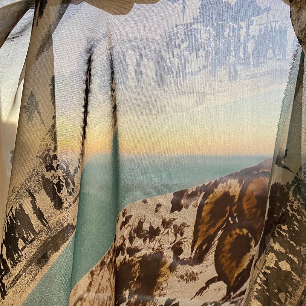 Encore une série unique – COLONIAL composées de 3 modelés: Jardin, Chemin d’or et Photo possibilité de créer un look fini chic avec un rideau leger en voile imprimée avec un motif assorti.