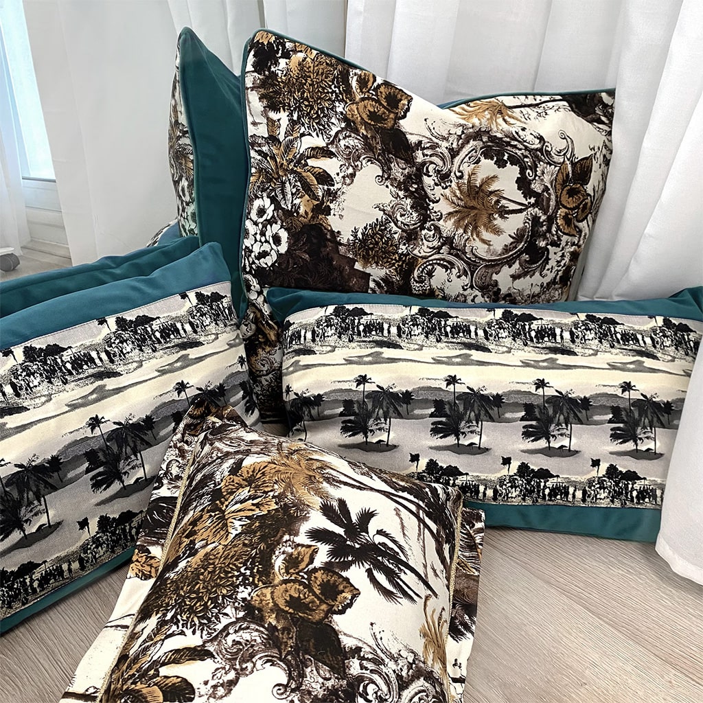 Housse en velours et coton imprimé colonial 45×45 cm