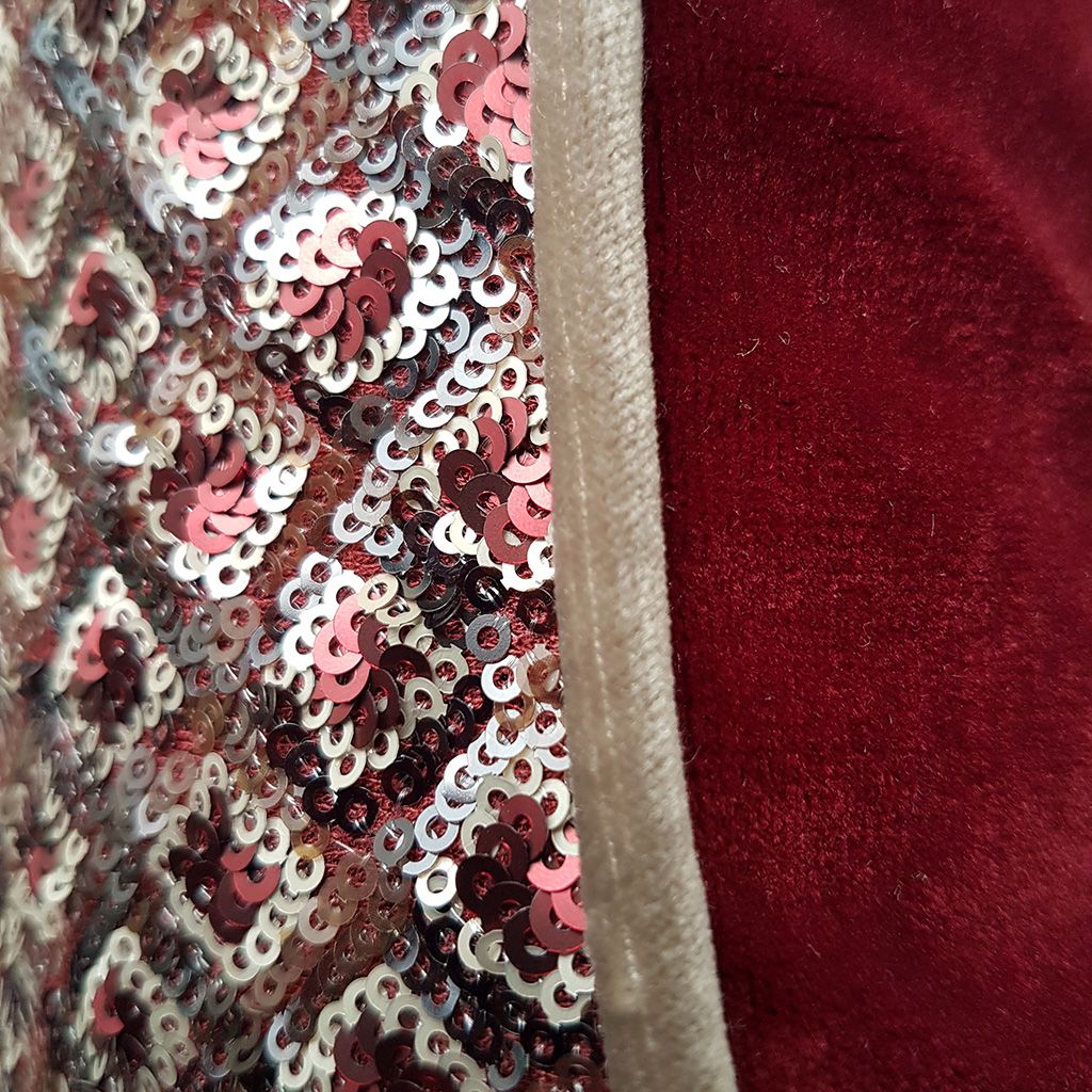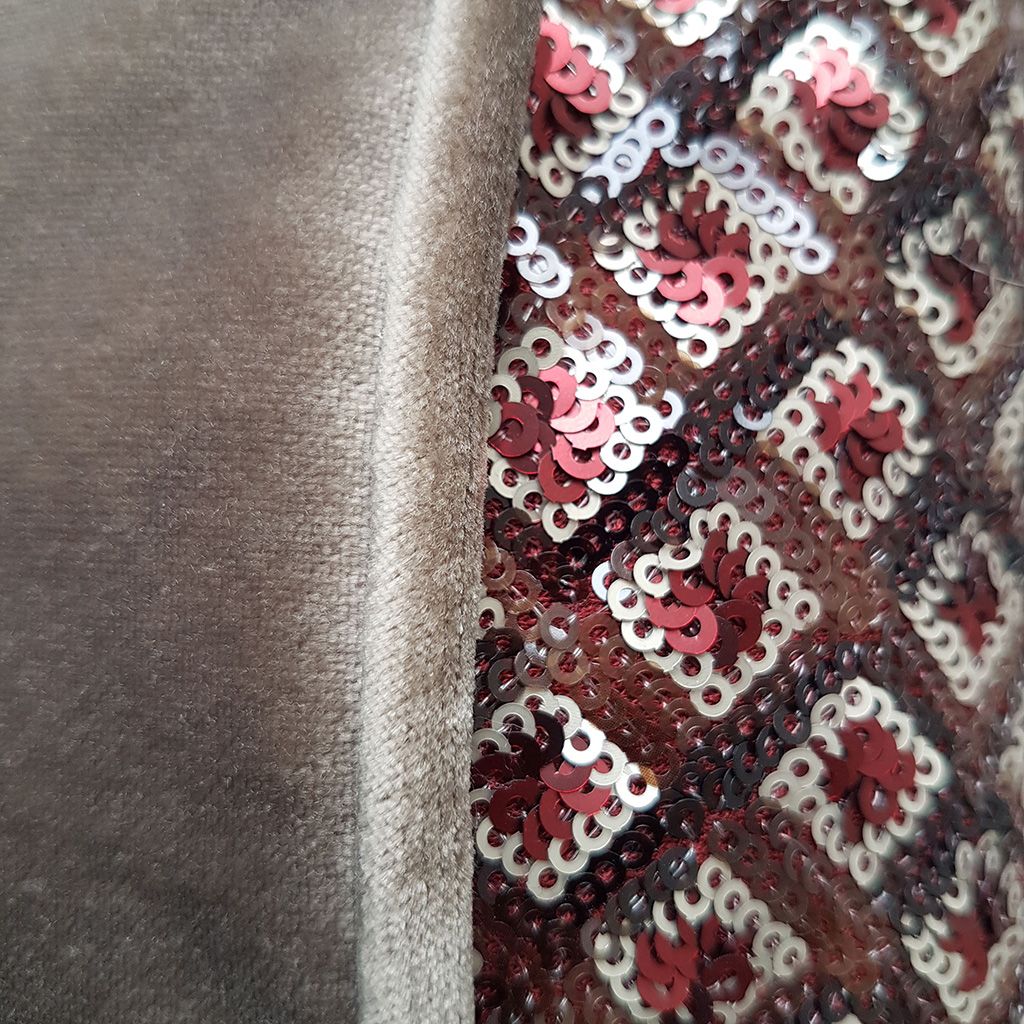 Tissus: jersey coton pailletеé: rouge-marron-beige et velours rouge (polyester) ou velours beige (coton)
