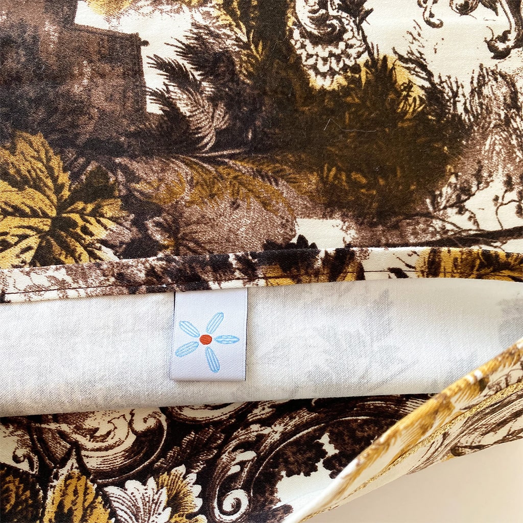 Petite housse à volant et ruban doré en coton 30×50 cm