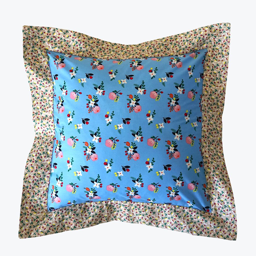 Une taie d’oreiller à volant plat en toile de coton imprimé les petites fleurs. Douce, confortable, saine et résistante. Utilisable en tant que linge de lit ou pour les coussins d’un canapé.